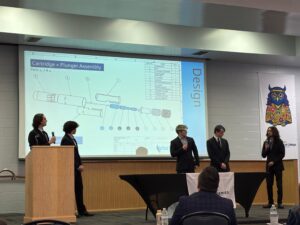 A team of 5 Seniors representing the Creekside’s Engineering Academy competed at the district level Project Innovation Competition. Their project, VitaTap, is a more affordable alternative to the EpiPen where the durable casing can be re-used reducing the cost to just epinephrine refills and injection components after use. This has been an issue they have been interested in for years due to several close friends having severe food allergies and jumped at the opportunity to design something when EpiPen’s patent ran out last fall. They won the award for “Best Practical Innovation” for the most feasible, easy-to-implement product with a clear potential for real-world use. The team members include Nathan Lough, Jacob Griffin, Elijah Miller, Dalton Phillips and Ryder Tweet.