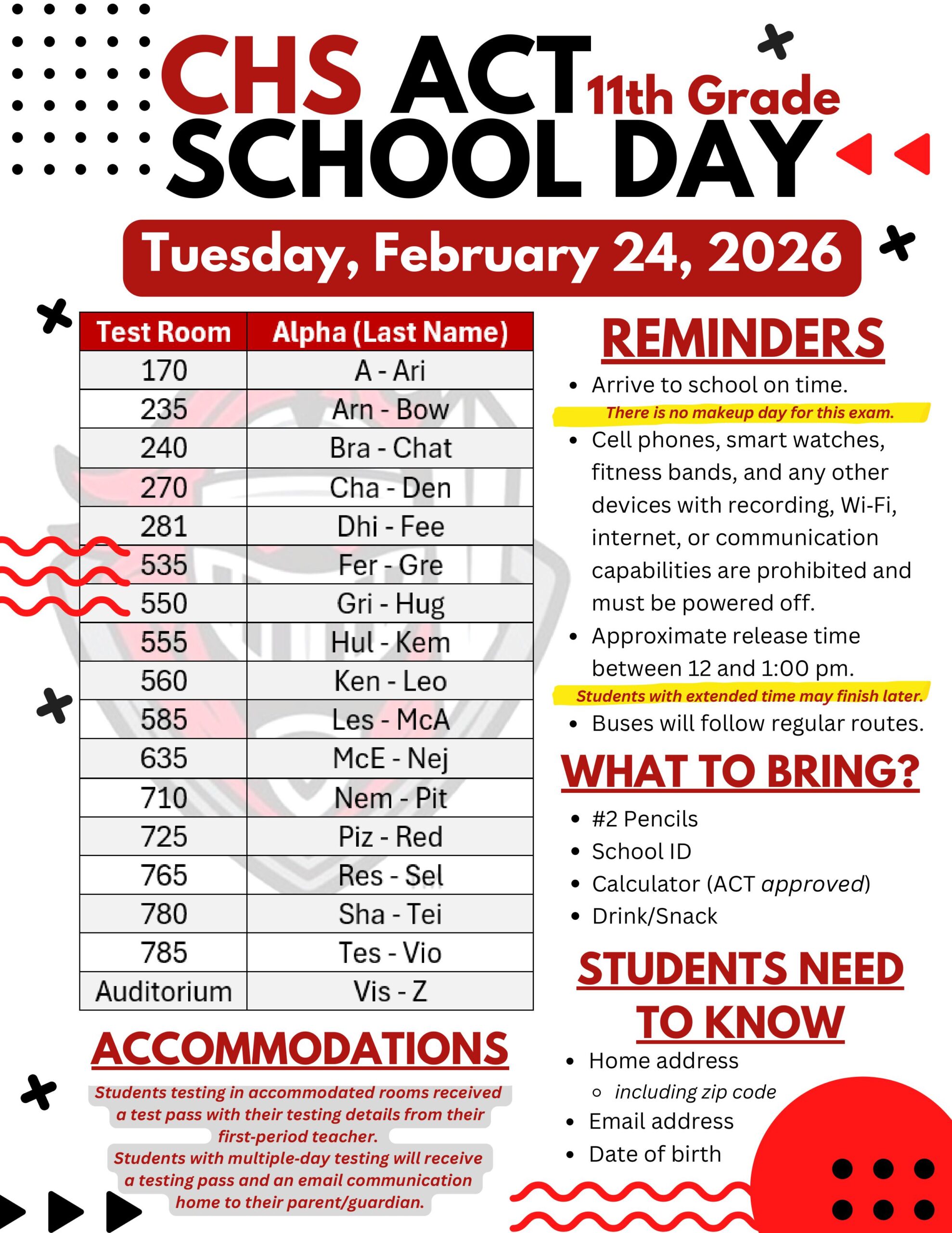 - Your parent/guardian must complete the 11th Grade ACT Test Day- Early Release Form for Tuesday, February 24th, 2026, by Sunday, February 22.