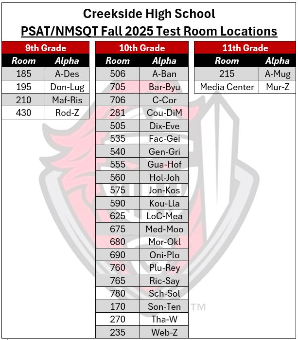 ⚠️ Students who are scheduled to take the PSAT with College Board-approved accommodations will receive a testing pass prior to test day. This pass will include their assigned testing room and other important test day details. Passes will be distributed by each student’s English teacher in the days leading up to the exam. Please remind your student to keep their pass in a safe place and bring it with them on test day.